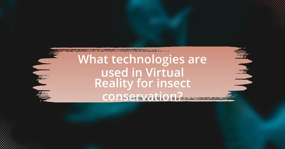 Virtual Reality (VR) for insect conservation primarily utilizes technologies such as immersive 3D modeling, interactive simulations, and augmented reality overlays. Immersive 3D modeling allows users to explore detailed environments that replicate natural habitats, enhancing understanding of insect ecosystems. Interactive simulations enable users to engage with insect behaviors and life cycles, fostering a deeper appreciation for their roles in the ecosystem. Augmented reality overlays can provide real-time information about various insect species, promoting awareness and education. These technologies collectively enhance educational experiences, making complex ecological concepts accessible and engaging for users.